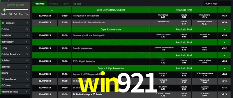 Esportes oferecidos pelas apostas esportivas da win921.com